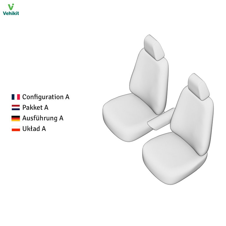 Ces housses sont spécialement conçues pour votre Ford Transit Connect. Elles épousent parfaitement les formes des différentes parties du siège ou de la banquette et ne font pas de pli. La sécurité étant primordiale, ces housses sont naturellement compatibles avec les airbags. En cas d’accident, les coutures élastiques brevetées se rompent facilement pour permettre à l’airbag de se déployer. Que ce soit pour une banquette avant ou des sièges séparés, nos housses vous garantissent donc une couverture optimale. Découvrez les différentes options disponibles dans le tableau ci-dessous, ainsi que le contenu de chaque set :