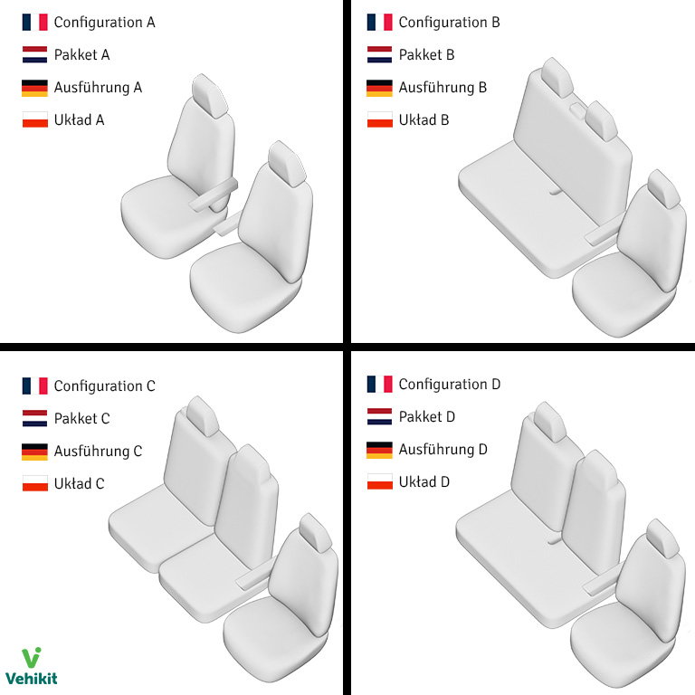 | Housses banquette passager 🛈 | 1 - assise 1 - dossier | 2 - assise 2 - dossier | 1 - assise 2 - dossier |