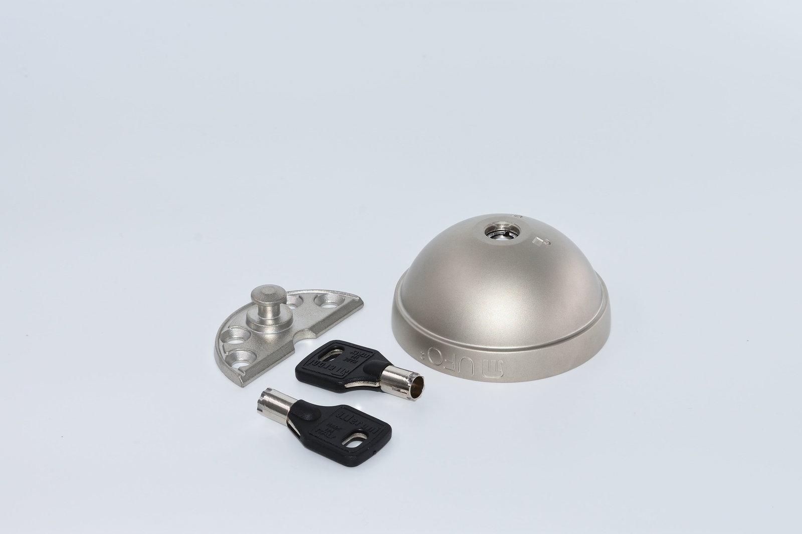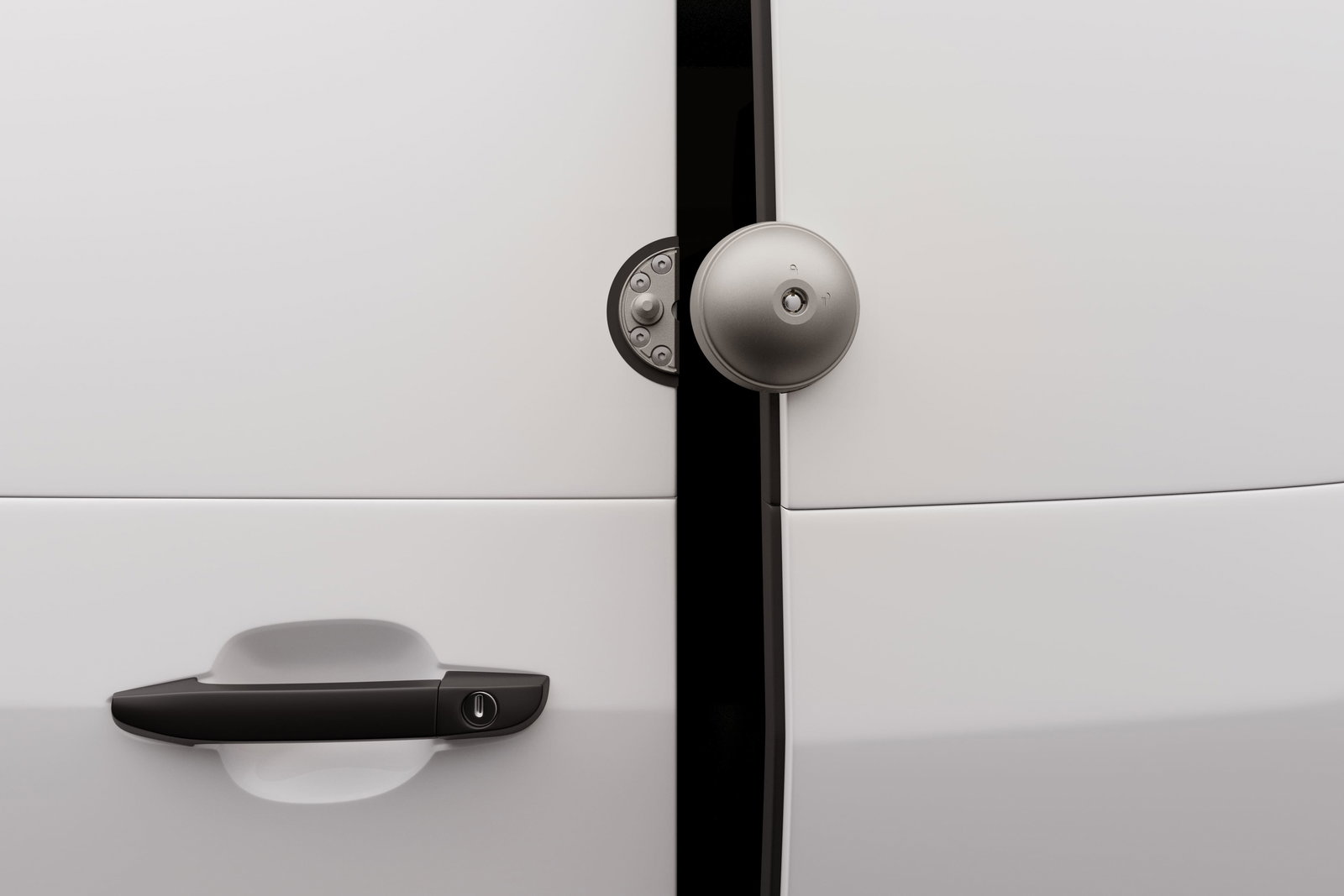 Le système de la serrure Meroni UFO est composé de deux parties une plaque de fixation et une sphère non amovible. La sphère et le design de la serrure dissuadent visuellement les cambrioleurs de forcer votre utilitaire.
