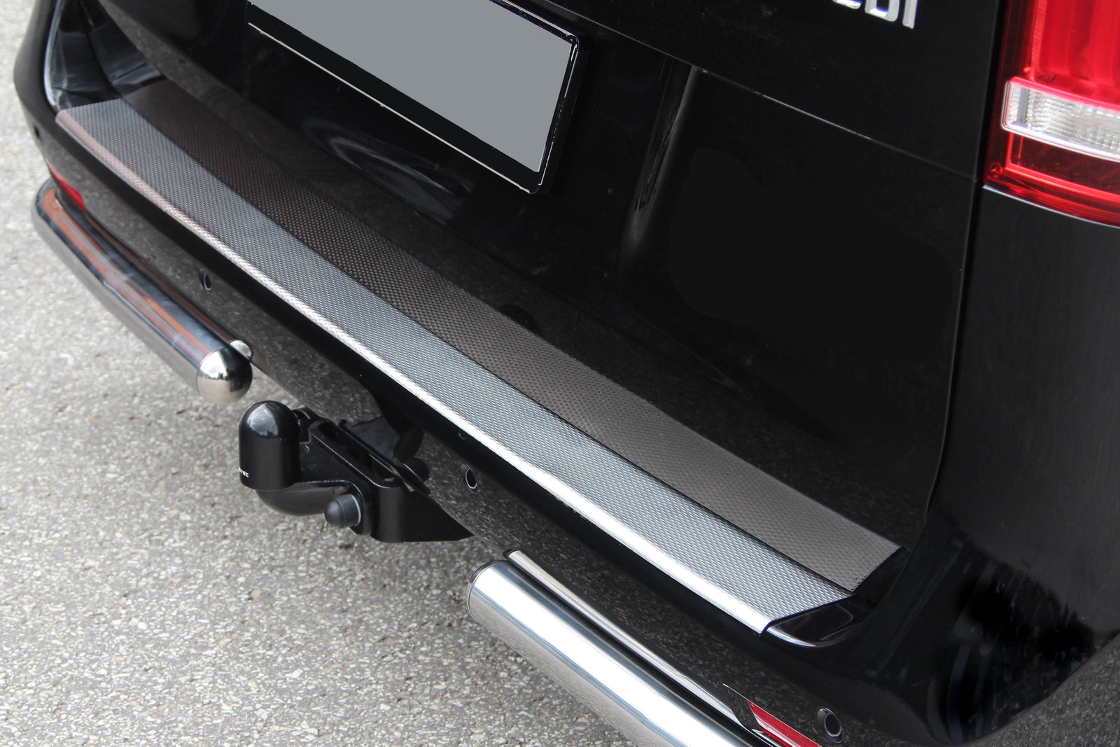 Pour éviter de glisser lorsque vous monter dans votre Mercedes Vito par l’arrière, le seuil de coffre possède un revêtement antidérapant. La composition en acier inoxydable vous assure un revêtement qui protégera votre pare-chocs pour longtemps.