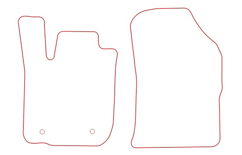 Attention ! Les images ci-dessus sont génériques. Les tapis de sol sont conçus sur mesure pour votre Dacia Dokker Van. Vérifiez l’ajustement à l’aide des traits rouge sur le schéma.