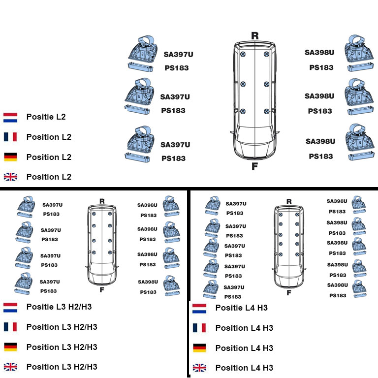 Let op! Voor de L4 variant wordt geen laadrol meegeleverd, omdat de achterste bevestigingspunten te ver van de rand van het dak zitten. Hierdoor kan de laadrol niet gebruikt worden.