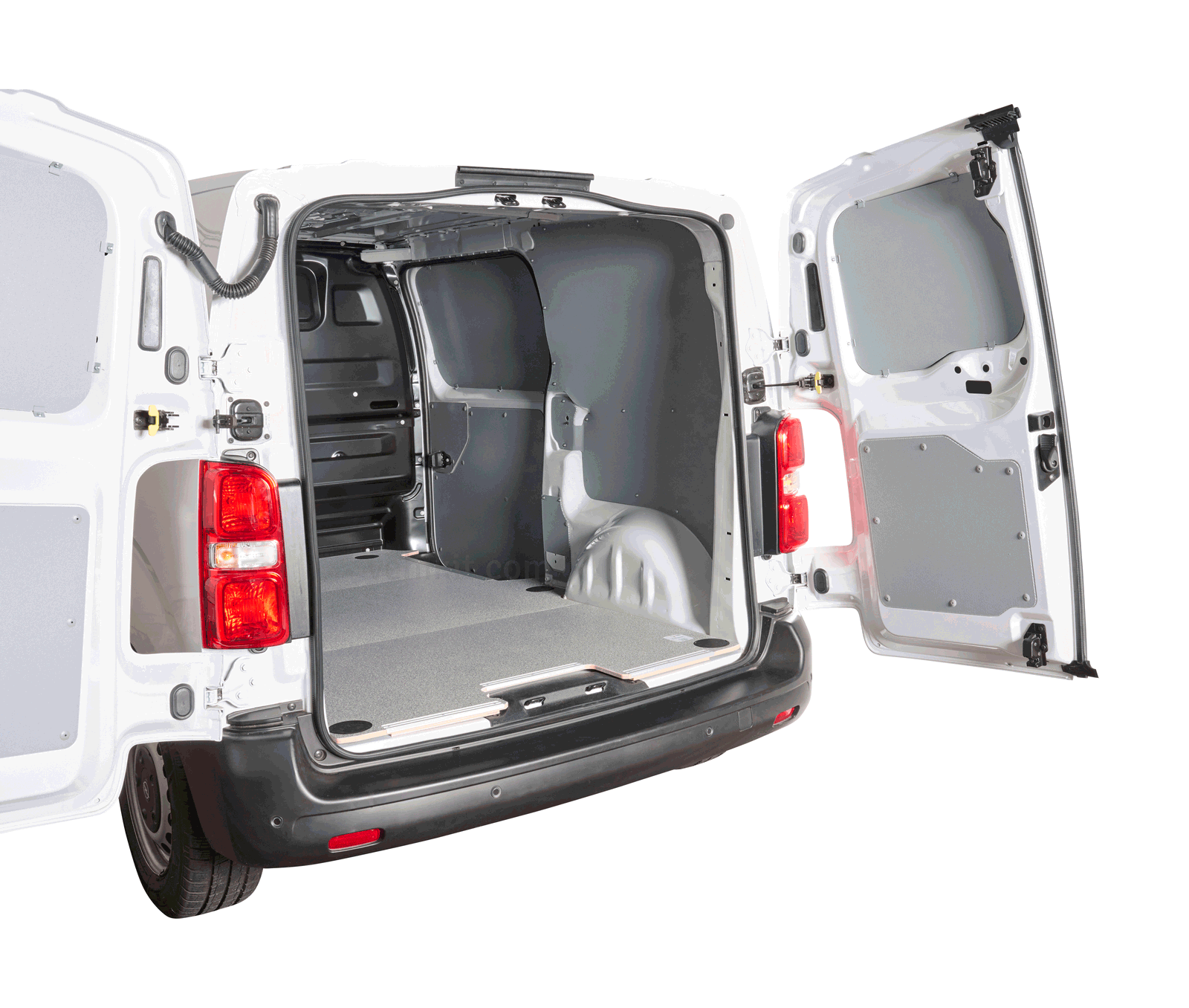 Aluminium afwerkstrips beschermen de vloer bij de schuif- en achterdeuren. De originele sjoroogpunten blijven bruikbaar dankzij de voorbereide openingen. Met geïntegreerde vloerschotels ligt de vloer stevig op zijn plek. En met de meegeleverde deksels werkt u de uitsparingen desgewenst netjes af.