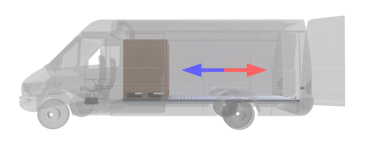 Dit systeem zorgt niet alleen voor het snel laden en lossen, maar ook voor een veilig transport van de pallets in de bedrijfswagen. De pneumatisch omhoog en omlaag gebrachte rolrails zorgen ervoor dat de rollen tijdens het transport omlaag blijven staan, waardoor de lading niet kan wegglijden. Het ‘auto-down‘ systeem informeert de bestuurder als het zakken na het laden is vergeten. Zodra het rempedaal wordt ingetrapt, wordt een elektronisch signaal naar de bedieningskast van het rollersysteem gestuurd. Hierdoor zakken de rolrails automatisch in het rollersysteem. Hierdoor kunnen ze tijdens het transport niet meer bewegen en worden beschadigingen aan de lading en uw Opel Movano Electric vermeden.
