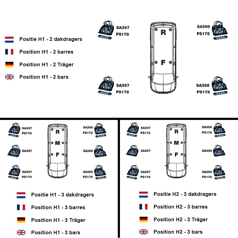 Let op! Het is achteraf niet mogelijk om de set dakdragers uit te breiden, losse dragers zijn niet leverbaar. Daarnaast heeft elke dakdrager zijn eigen positie op het dak. Het is daarom van belang om de dakdragers volgens de instructies te monteren.