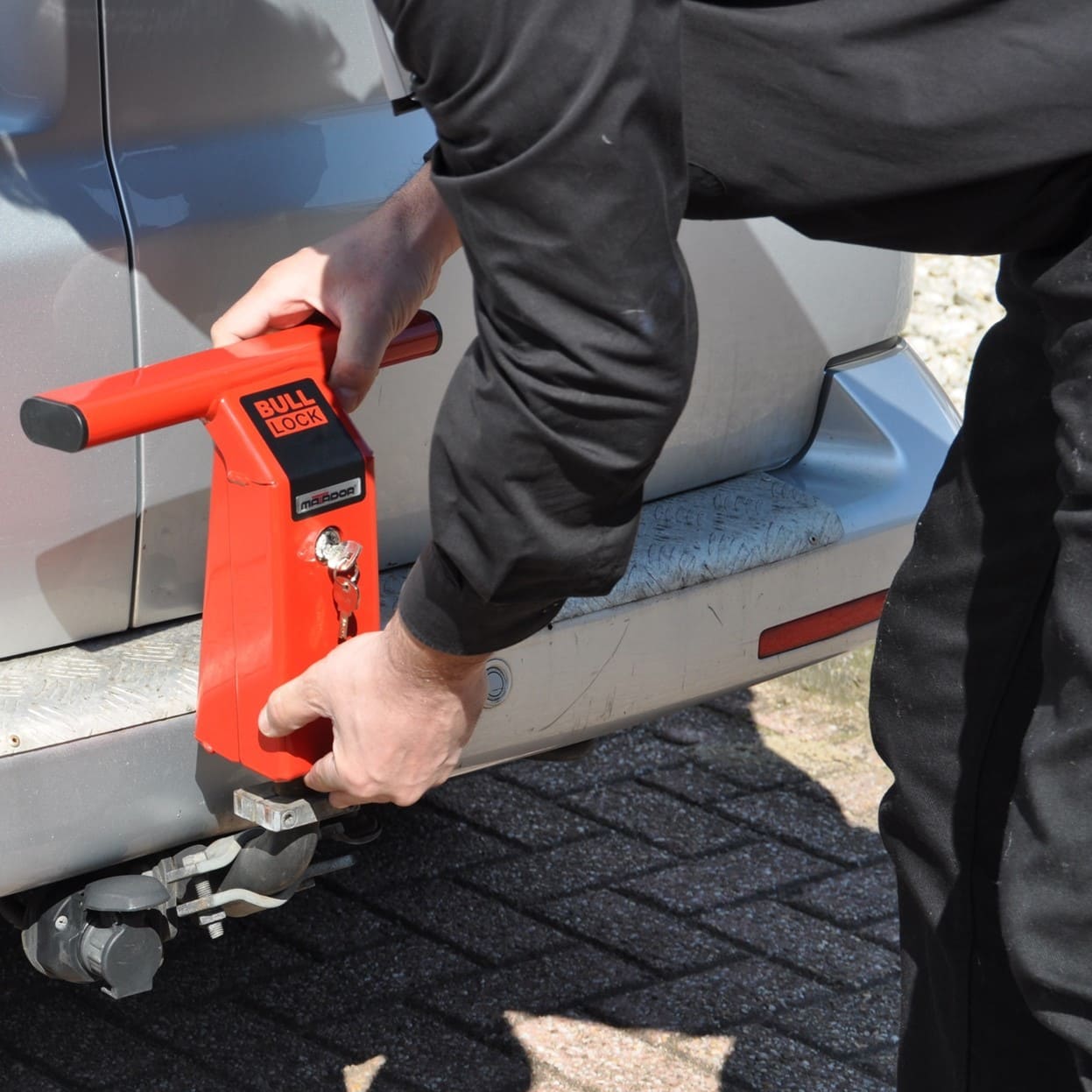 Het slot past op iedere trekhaak en is heel eenvoudig te plaatsen. Hierna is het onmogelijk om de achterklep of -deur te openen.