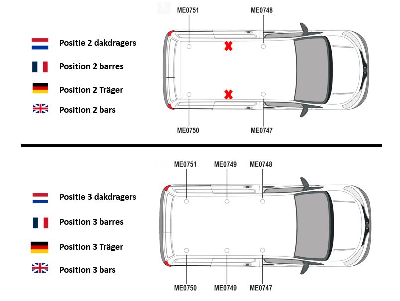 LET OP! Elke dakdrager heeft zijn eigen positie op het dak. Het is daarom van belang om de dakdragers volgens de instructie te monteren.
