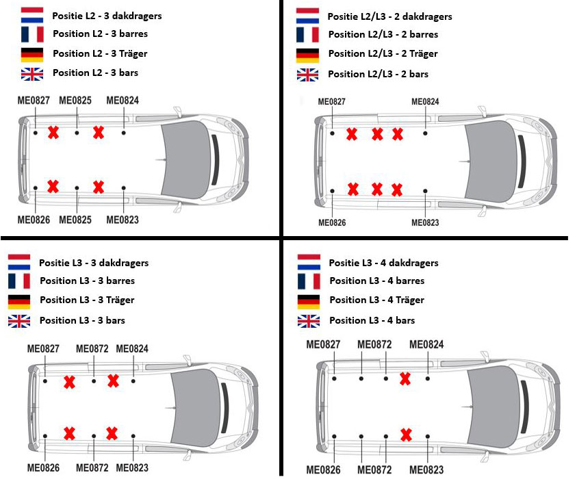 LET OP! Elke dakdrager heeft zijn eigen positie op het dak. Het is daarom van belang om de dakdragers volgens de instructie te monteren.