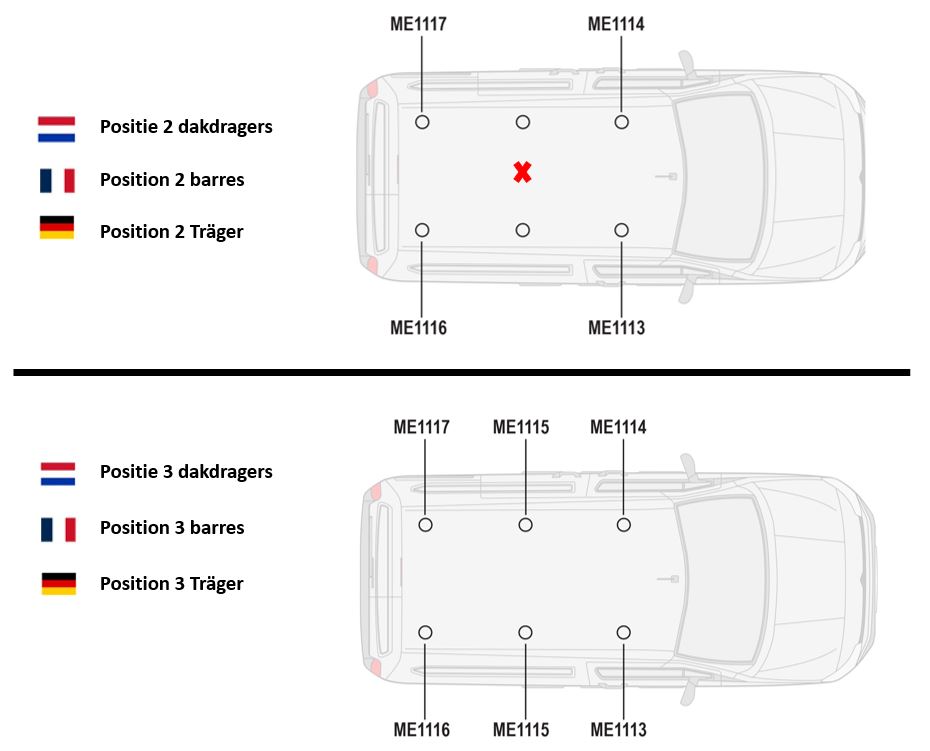 LET OP! Elke dakdrager heeft zijn eigen positie op het dak. Het is daarom van belang om de dakdragers volgens de instructie te monteren.
