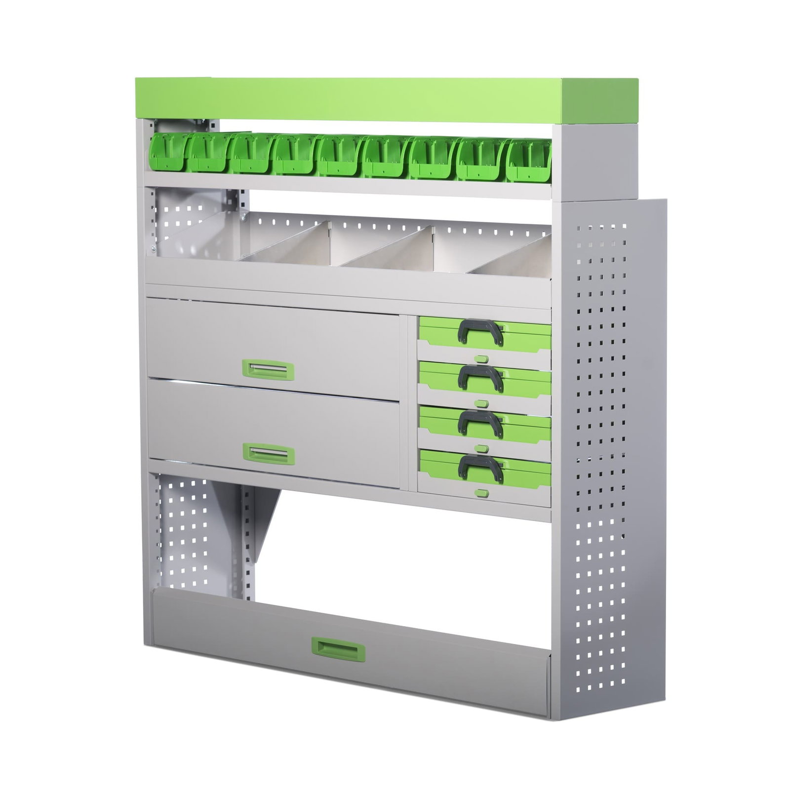 De bedrijfswageninrichting krijg je volledig geassembleerd thuis geleverd inclusief montage gereedschap. Met behulp van de beugels kan je de kast bevestigen aan de vloer en zijwand van jouw voertuig. Wij leggen alles stap voor stap uit in de meegeleverde handleiding.