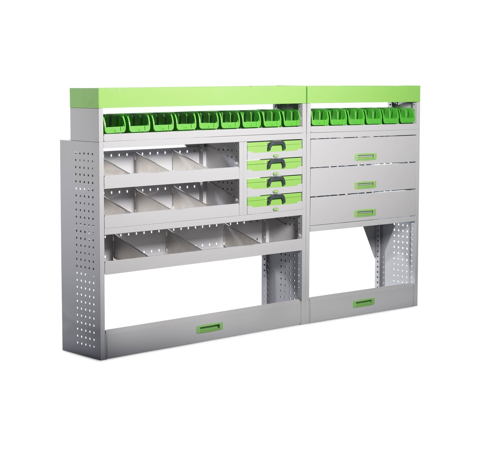 De bedrijfswageninrichting bestaat uit een combinatie van aluminium en roestvrij staal. Door deze combinatie biedt de bedrijfswageninrichting een ideale prijs-kwaliteit-gewichtsverhouding voor jouw Nissan Interstar Electric Van . De bedrijfswageninrichting maakt het mogelijk om jouw materiaal overzichtelijk op te bergen, voorraad tekorten eenvoudig te identificeren en jouw werkprocessen efficiënter te laten verlopen.