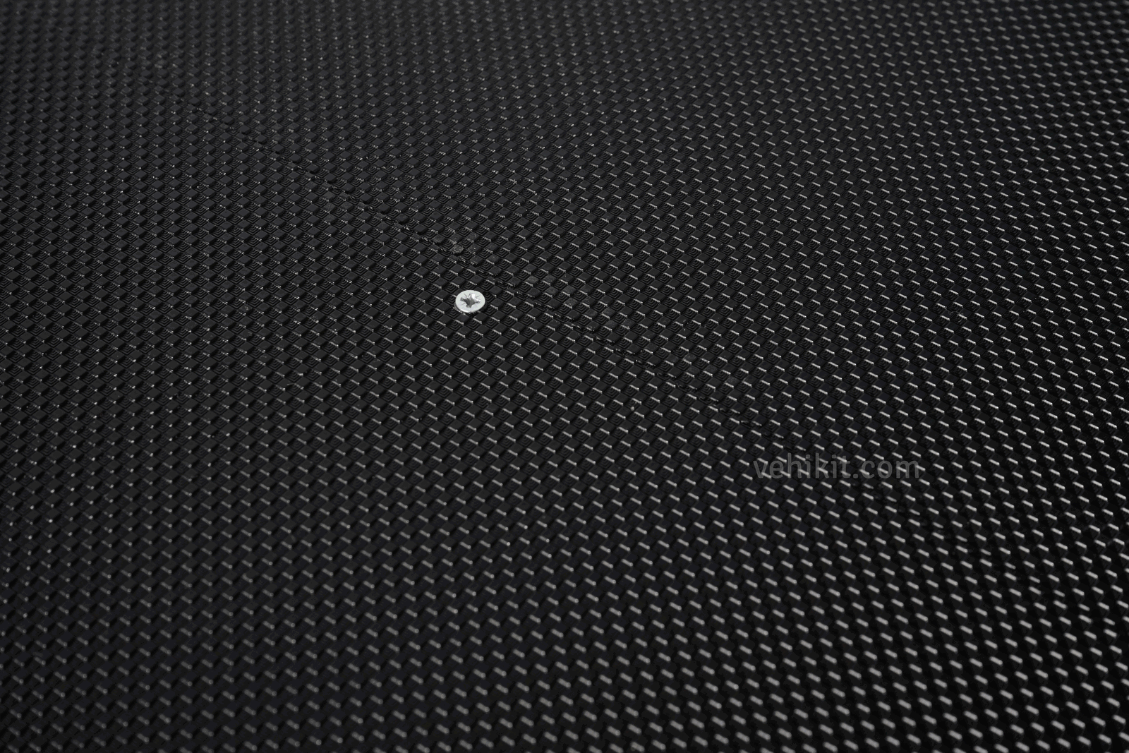 Voor extra stabiliteit raden we aan om de vloer te lijmen door een beetje kit aan te brengen op de stalen ondervloer. Dit voorkomt verschuiven en trillen van de laadvloer. Wij adviseren SIKA Flex 252 als montageproduct, maar vergelijkbare producten zijn ook geschikt. Let op: de kit wordt niet meegeleverd. Zet de laadvloer daarna extra vast met vloerschotels die je op de sjoroogbevestigingen monteert.
