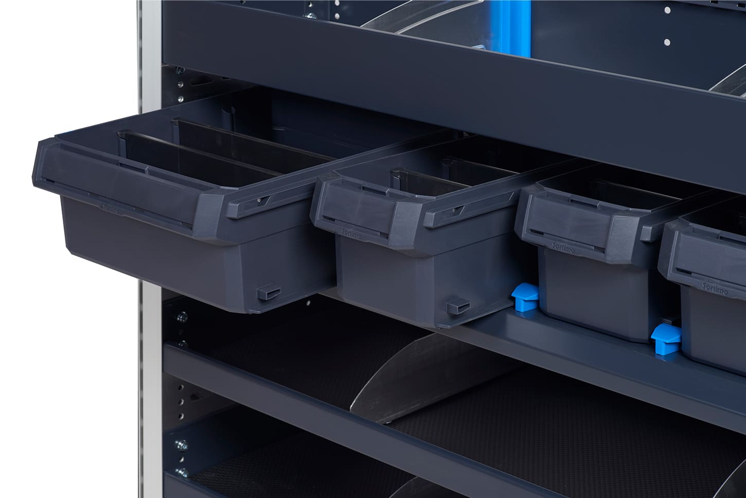 - Uitneembare SR-BOXX (8x), grote laden (3x) en 2 schappen met tussenschotten