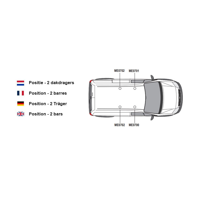 Let op! Het is achteraf niet mogelijk om de set dakdragers uit te breiden, losse dragers zijn niet leverbaar. Daarnaast heeft elke dakdrager zijn eigen positie op het dak. Het is daarom van belang om de dakdragers volgens de instructies te monteren.