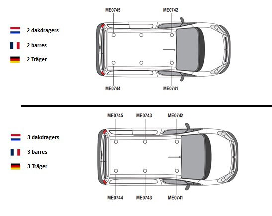 Let op! Het is achteraf niet mogelijk om de set dakdragers uit te breiden, losse dragers zijn niet leverbaar. Daarnaast heeft elke dakdrager zijn eigen positie op het dak. Het is daarom van belang om de dakdragers volgens de instructies te monteren.