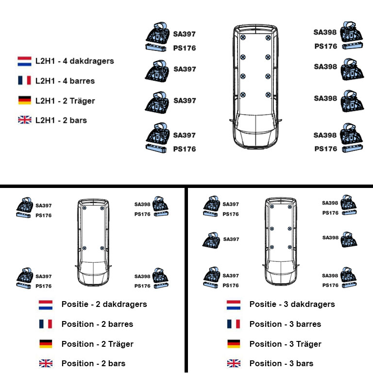 Let op! Het is achteraf niet mogelijk om de set dakdragers uit te breiden, losse dragers zijn niet leverbaar. Daarnaast heeft elke dakdrager zijn eigen positie op het dak. Het is daarom van belang om de dakdragers volgens de instructies te monteren.