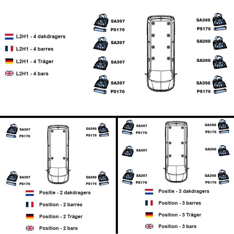 Let op! Het is achteraf niet mogelijk om de set dakdragers uit te breiden, losse dragers zijn niet leverbaar. Daarnaast heeft elke dakdrager zijn eigen positie op het dak. Het is daarom van belang om de dakdragers volgens de instructies te monteren.