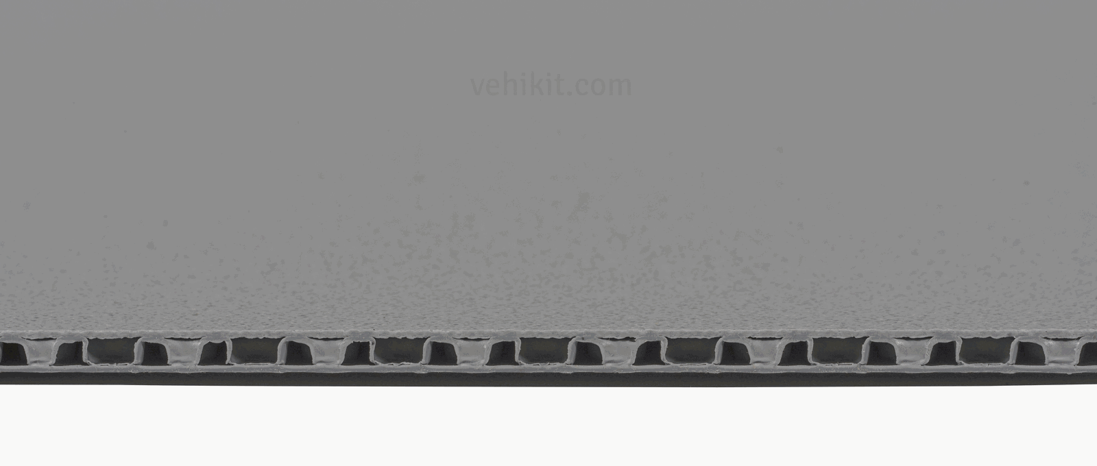 Kunststof is licht van gewicht, goed bestand tegen vocht en daardoor ook ideaal voor elektrische bedrijfswagens, waar elke kilo telt. De panelen zijn 4,2 mm dik en verkrijgbaar in lichtgrijs (RAL 7035) en donkergrijs (RAL 7046).