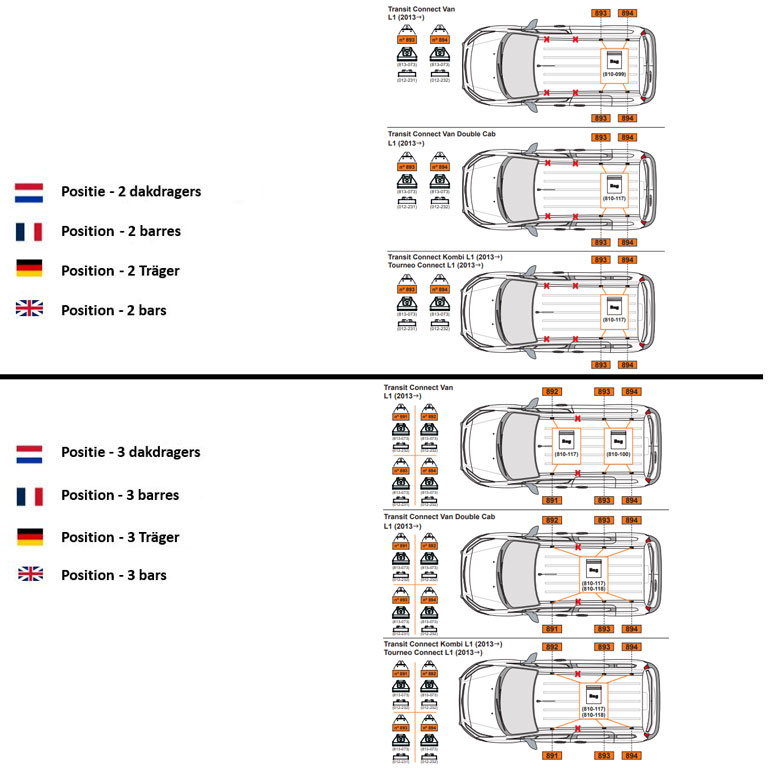 Let op! Het kan zijn dat de maximale draagcapaciteit van de dakdragers hoger is dan de bedrijfswagen. De maximale dakbelasting opgegeven door de fabrikant van het voertuig is altijd leidend.