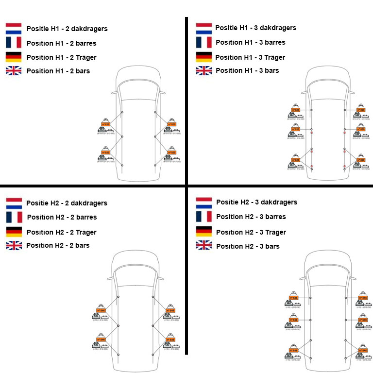 Let op! Het is achteraf niet mogelijk om de set dakdragers uit te breiden, losse dragers zijn niet leverbaar. Daarbij heeft elke dakdrager zijn eigen positie op het dak. Het is daarom van belang om de dakdragers volgens de instructie te monteren.