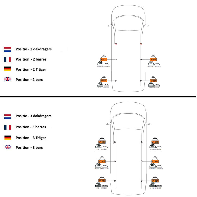 Let op! Het is achteraf niet mogelijk om de set dakdragers uit te breiden, losse dragers zijn niet leverbaar. Daarbij heeft elke dakdrager zijn eigen positie op het dak. Het is daarom van belang om de dakdragers volgens de instructie te monteren.