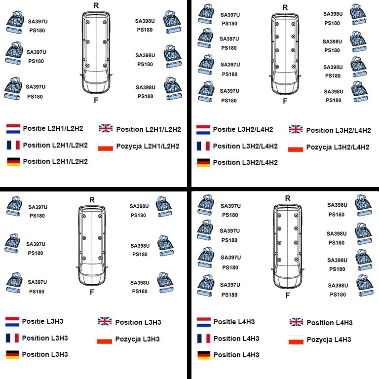 | H | Wysokość pojazdu (mm) | 2254 | 2522 | 2522 | 2760 | 2522 | 2760 | ||