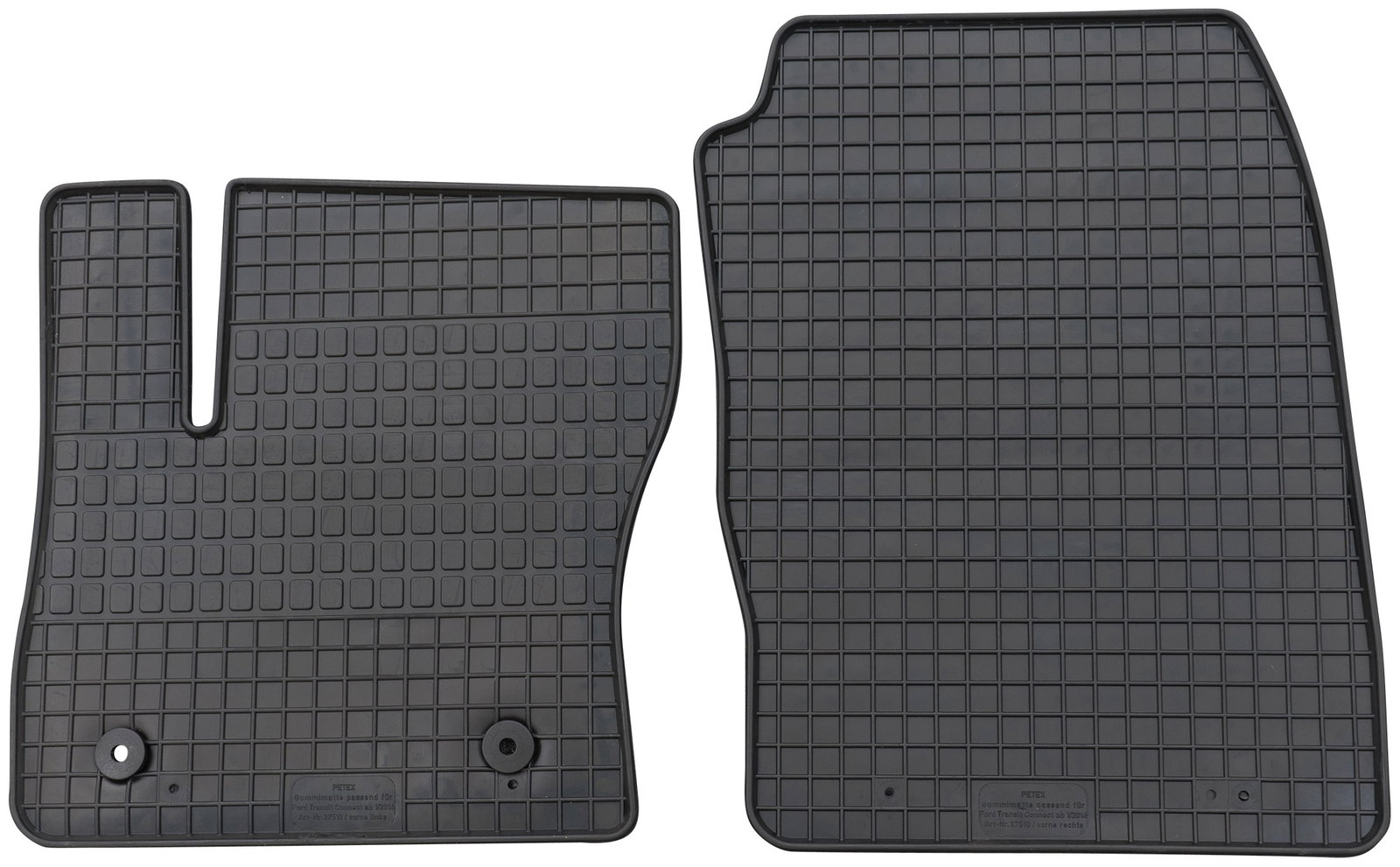 Model został precyzyjnie dopasowany do Ford Transit Connect, obejmując całą przednią część kabiny. Bez względu na to, czy pojazd jest wyposażony w pojedynczy fotel pasażera, czy podwójną kanapę, produkt idealnie przylega do podłogi. Układ kabiny pozostaje taki sam niezależnie od konfiguracji siedzeń, co gwarantuje perfekcyjne dopasowanie.