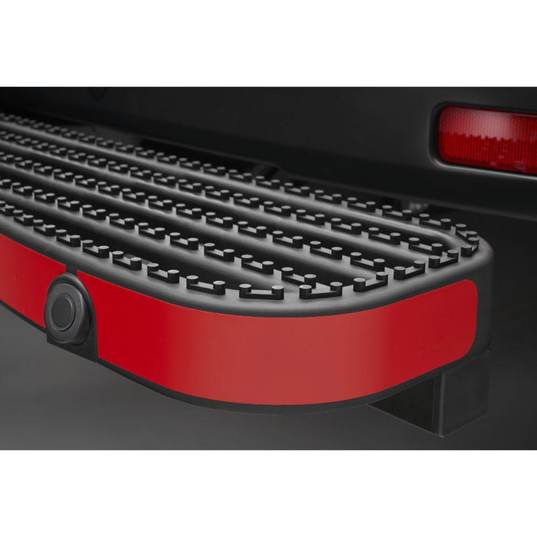 Rhino TowStep jest wykonany z wysokiej jakości tworzywa kompozytowego na solidnej stalowej ramie. Cała szerokość stopnia ma antypoślizgową powierzchnię zapewniającą optymalną przyczepność w każdych warunkach pogodowych. Tylny stopień rozciąga się na całą szerokość twojego Mercedes eVito. Środkową część można zdemontować w celu podłączenia przyczepy. Usunięcie tej części umożliwia swobodny obrót przyczepy o kąt 110 stopni. Można również samodzielnie zamontować blokadę w części środkowej.