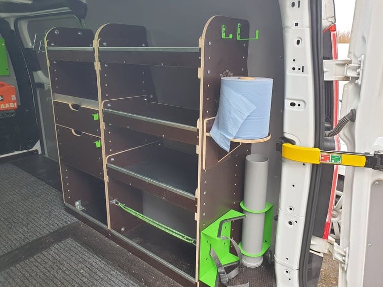 Dzięki drewnianym regałom samochodowym Vehikit możesz komfortowo zorganizować przestrzeń ładunkową przy niższych kosztach. Uchwyt na gaśnicę umożliwia transport gaśnicy bezpiecznie i w miejscu dostępnym na wyciągnięcie ręki.