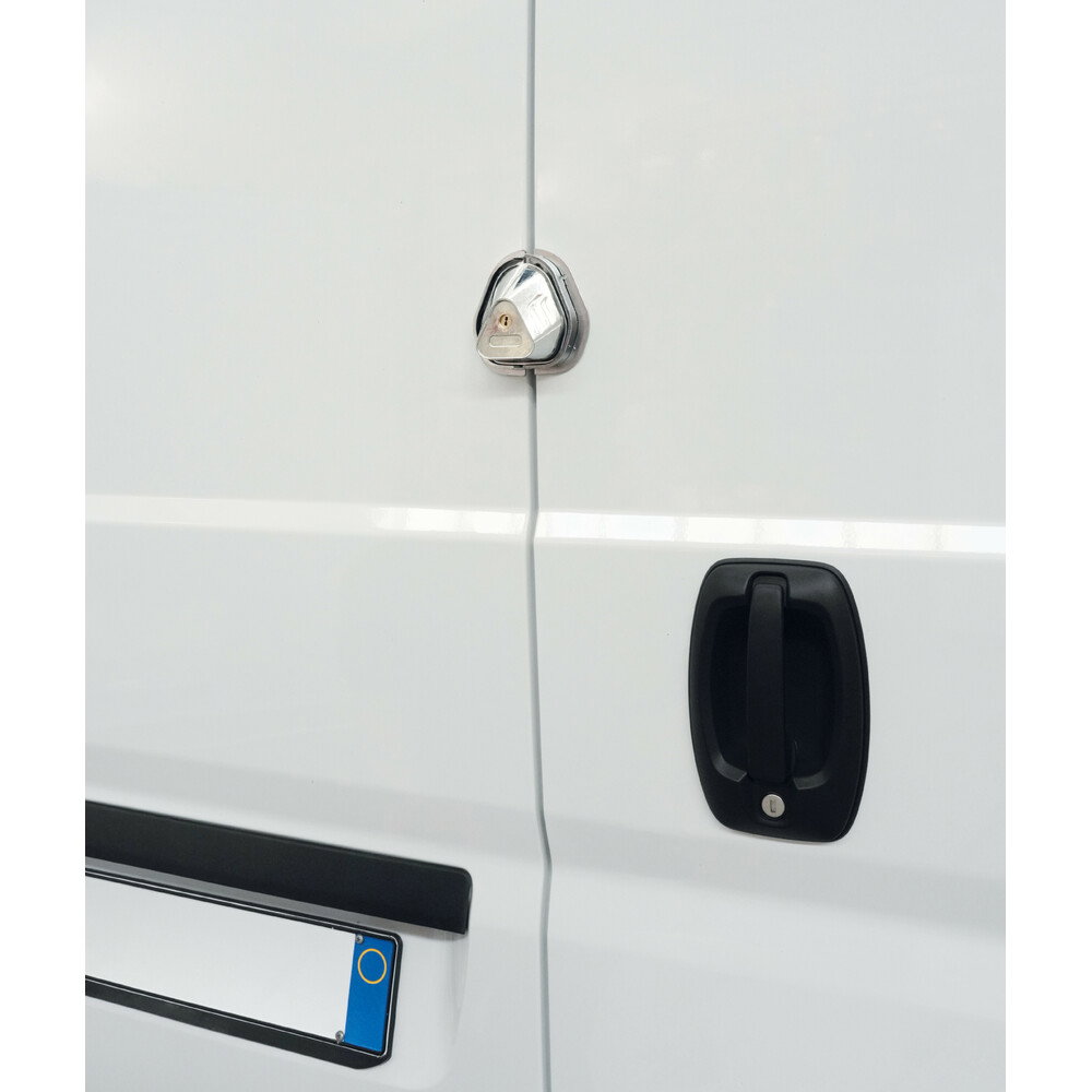 Chromowana stal chroni zamek przed rdzą, a stożkowy kształt pomaga utrzymać pewne zamknięcie nawet przy lekkim przesunięciu drzwi. Vigilant można zamontować w pojeździe użytkowym niezależnie od marki i rocznika. Niezależnie od tego, czy zamawiasz jedną czy dwie sztuki, w paczce są dwa identyczne klucze, które pasują do zamontowanych zamków, zarówno na drzwiach bocznych, jak i tylnych.